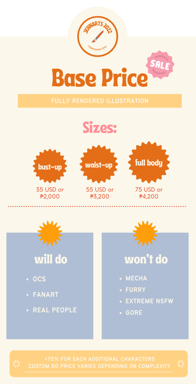✦ Once the final piece is sent, I will only allow a maximum of 3 revisions (exceeding revisions will have an additional P200 / $5 each)